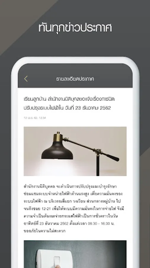 Know all important announcements, such as tap water not flowing. Power outages in the project area Annual general meeting