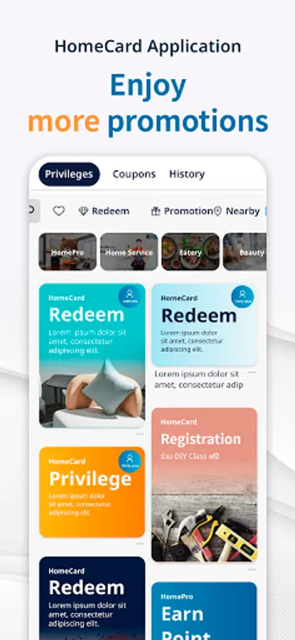 HomeCard application is an easier and more convenient way to enjoy various privileges and promotions from HomePro, MEGA HOME and participating partners from everywhere. It comes with many function created to match all kind of lifestyles