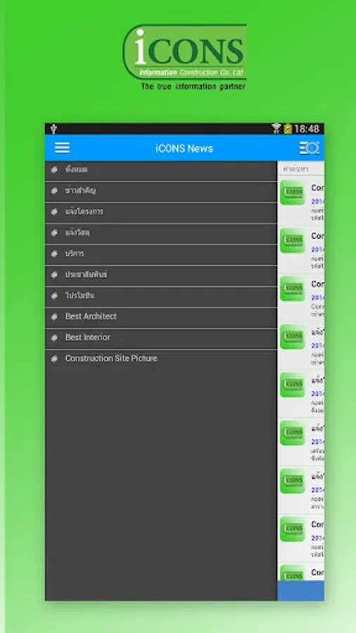 iCONSNews the Application in Thailand To make you aware of the impending new construction.