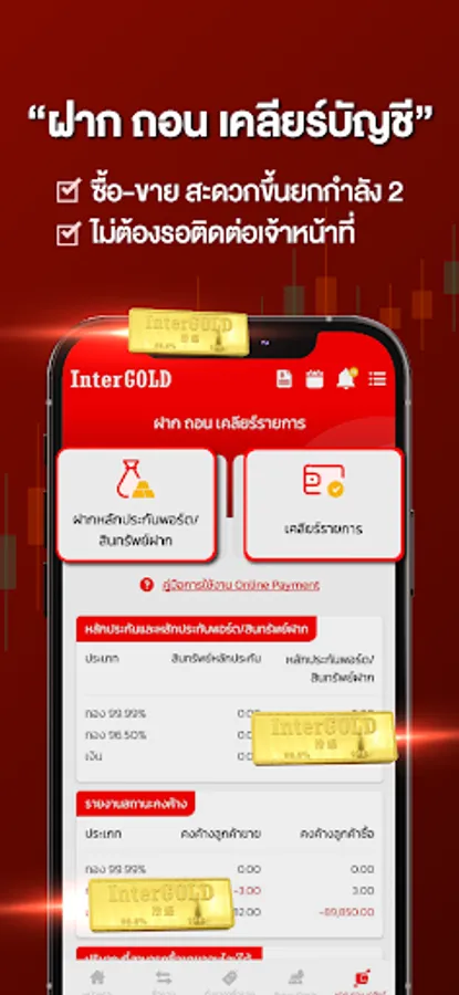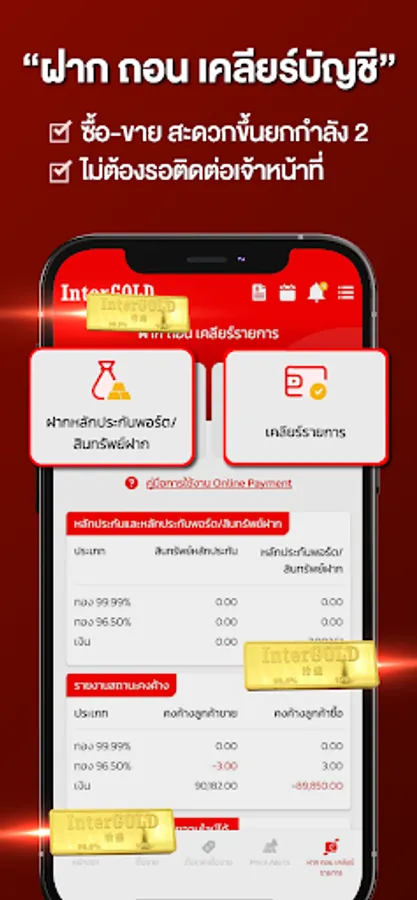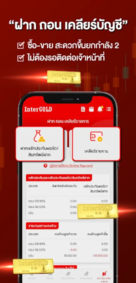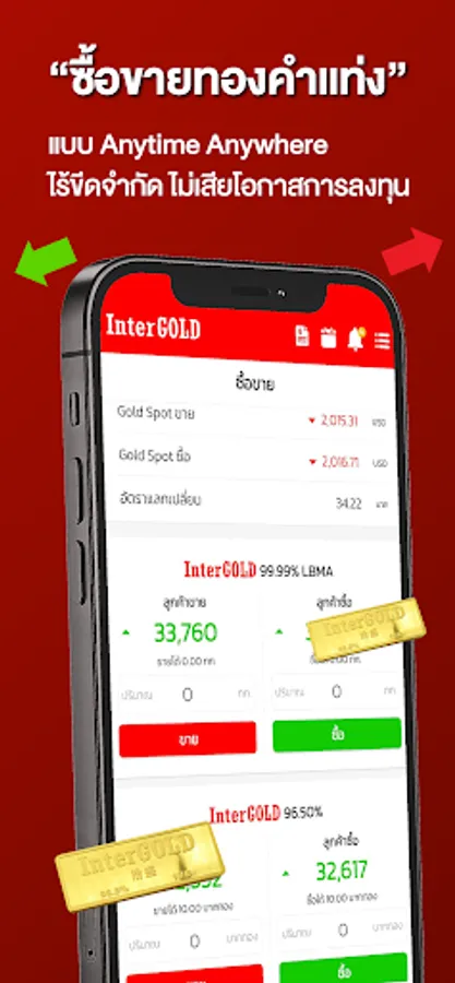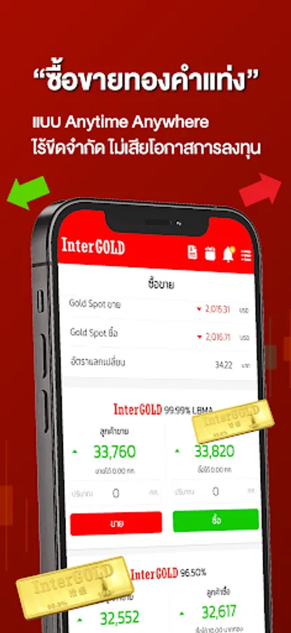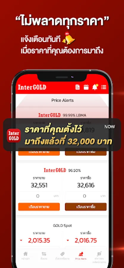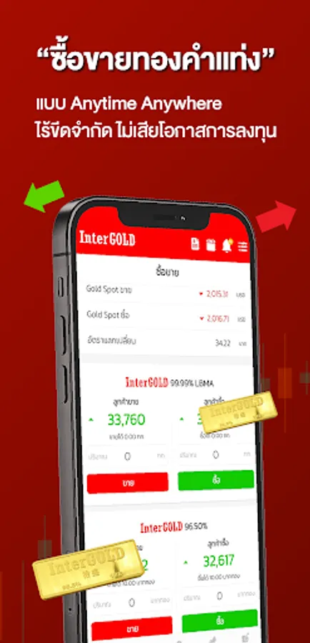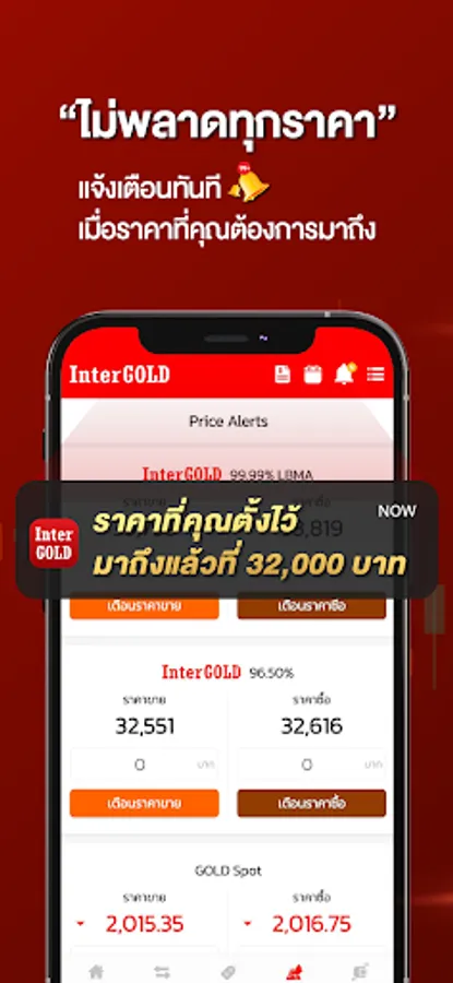 open experience A new way of trading gold from Intergold. don't have to wait in front of the shop no need to queue with price alert system Never miss a trade Allowing you to trade anywhere, anytime with the main function that will serve as your support throughout your investment.