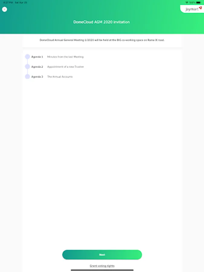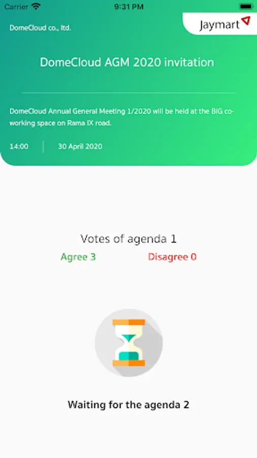 AGM voting is one of JBP (Jaymart Blockchain Platform). We're the very first online AGM voting that complies with regulations in Thailand.