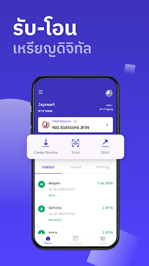 Select "Create Receive" by inputting the amount in THB or token. In the event of input with THB, the app will convert to token automatically.