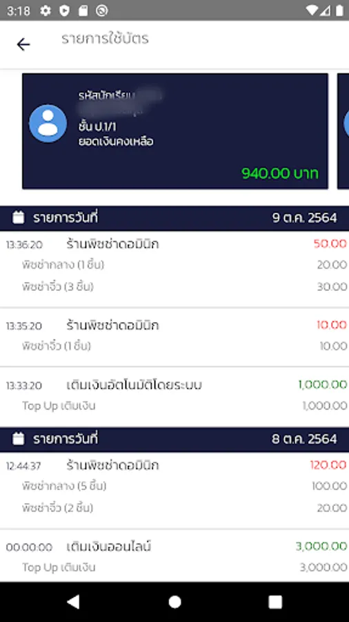 2) Top up the student card and pay the bills via online channels, including QR code, credit card and via mobile banking app