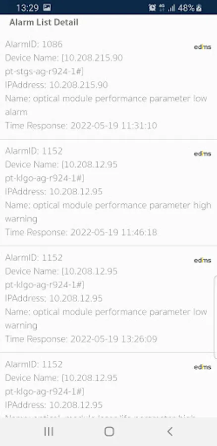 EDIMS is an application for network device monitoring system. The application will show informations that correct from the devices such as network topology, alarms, bandwidth and etc.