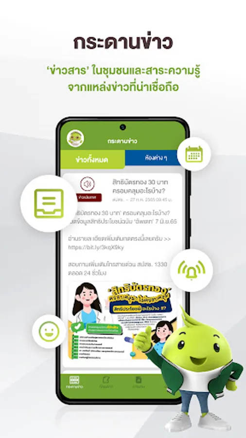 เมื่อมีข่าวสาร ข้อมูลความรู้เกี่ยวกับการส่งเสริมสุขภาพ และงานสาธารณสุข หน่วยบริการสุขภาพจะส่งผ่านแอปพลิเคชันได้รวดเร็ว แจ้งข่าวและประกาศได้ในคราวเดียว อสส. รับรู้พร้อมกัน ข้อมูลมีความถูกต้องแม่นยำและเป็นการสื่อสารสองทาง อสส. สามารถร่วมแสดงความคิดเห็นกับข่าว และประกาศได้