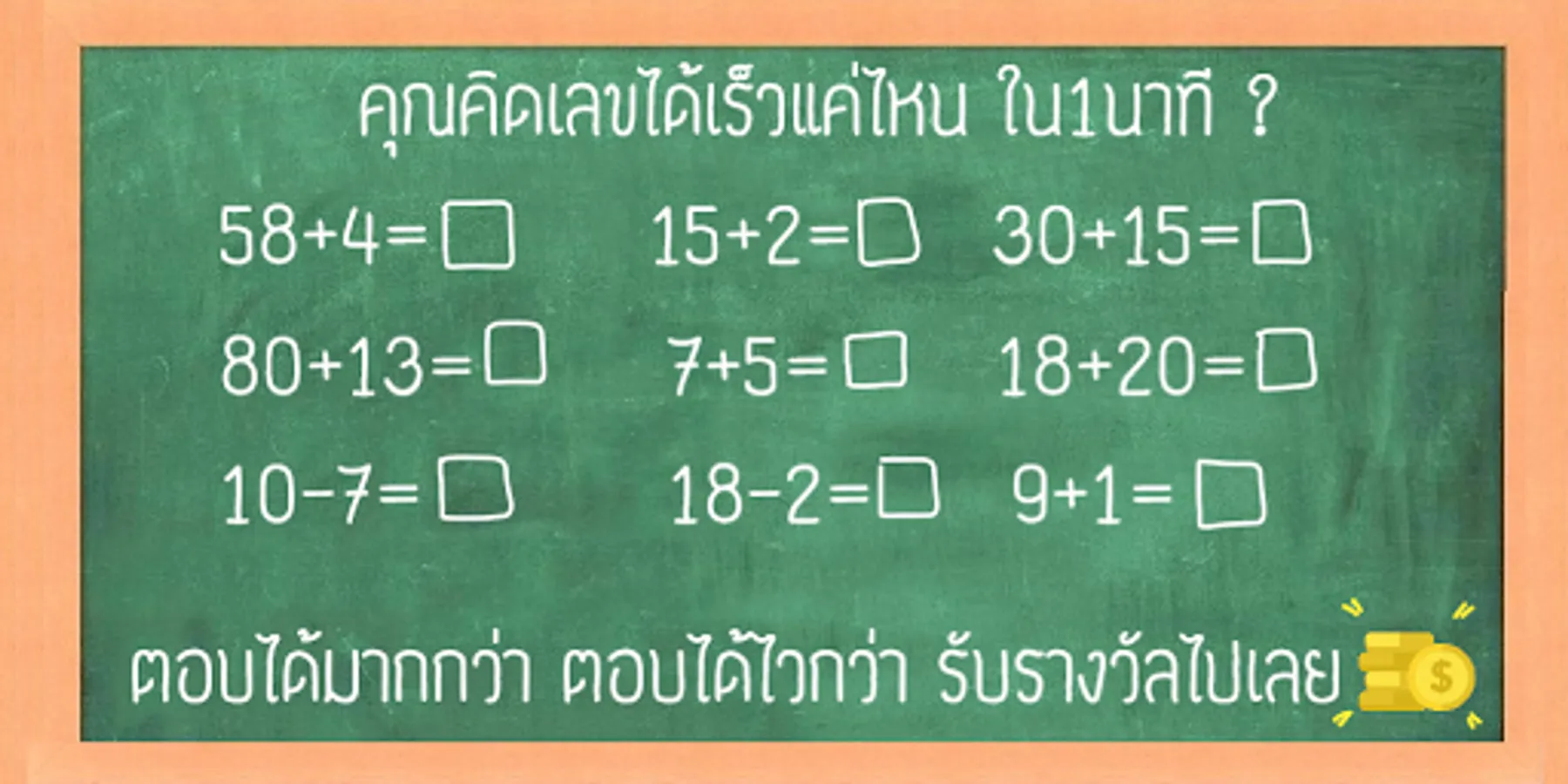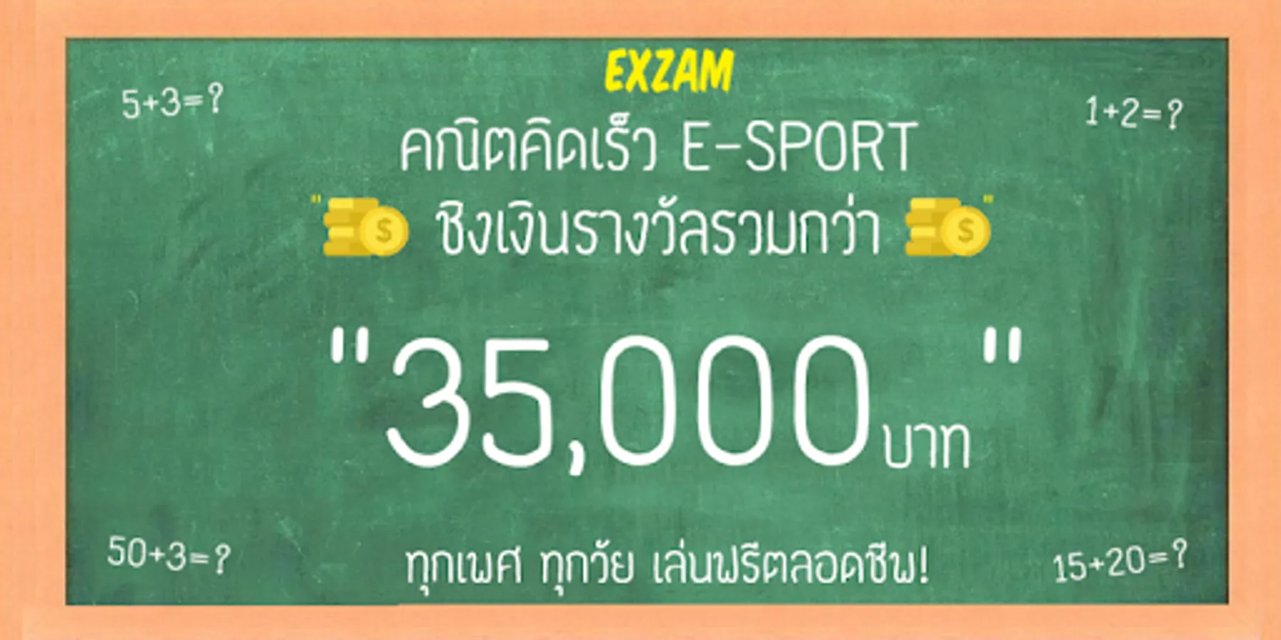 EXZAM E-SPORT is a game for competence in mathematics. In the beginning, this game was developed just to encourage the younger group of the developer family. And his friends More interested in mathematics To develop better academic performance in mathematics And there is a reward for the children who really intend to develop their skills The response is quite good in a short time, the developers have seen a channel to promote Thai youth. Interested in learning more mathematical knowledge, the project game EXZAM started In addition to being free to play for all sexes and ages for a lifetime There are still many awards for the winners. As an incentive for Thai youth to be more interested in studying mathematics
