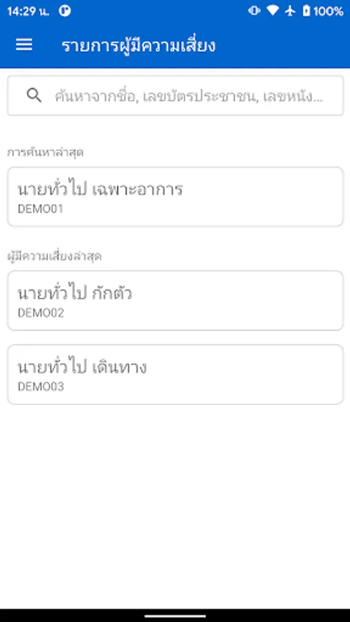 DDC-Care Agent is an application for health workers. and those involved in public health care For convenience in importing, editing information and tracking the symptoms of risk groups with dangerous diseases. Users can import risk groups by generating a QR code and can edit risk group information through the application. In addition, staff can discuss and inquire about the symptoms of risk groups through the Video Call function.