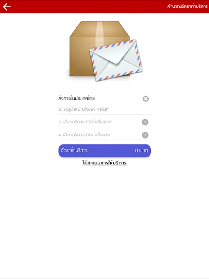 App application for calculating rates of Thailand Post Co. quickly to facilitate the assessment of cost.
