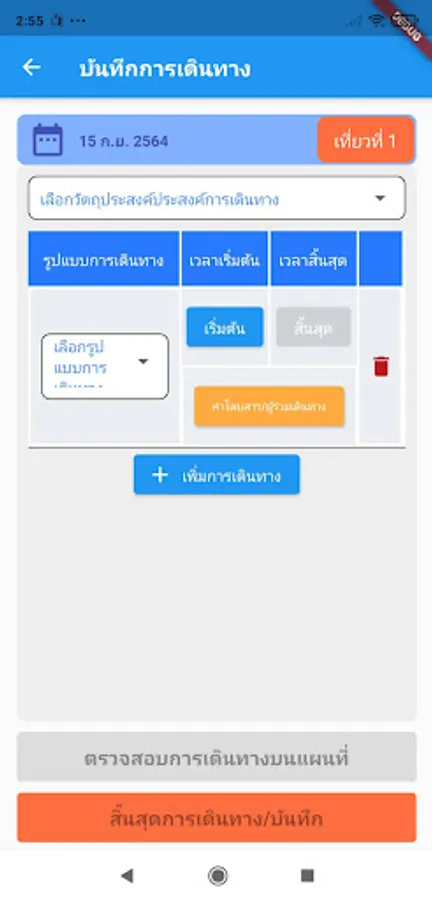 แอปพลิเคชัน สำหรับเก็บข้อมูลการเดินทาง สำหรับนำไปวิเคราะห์ข้อมูล Big data ด้วย AI เพื่อนำผลการวิเคราะห์มาปรับปรุงระบบขนส่งภายในประเทศ