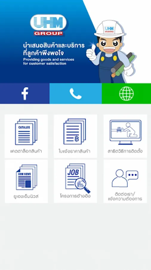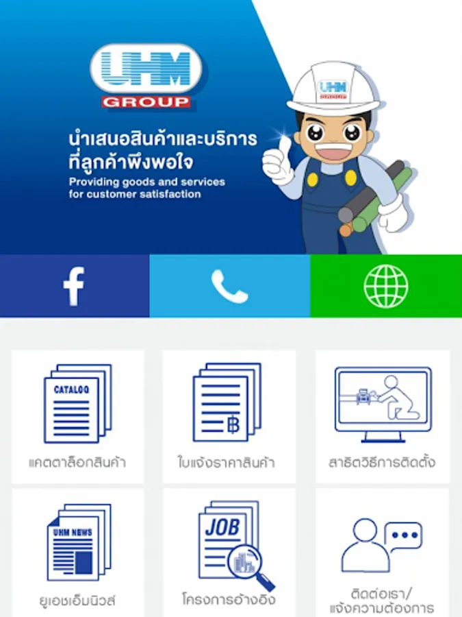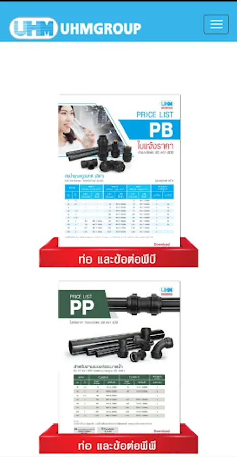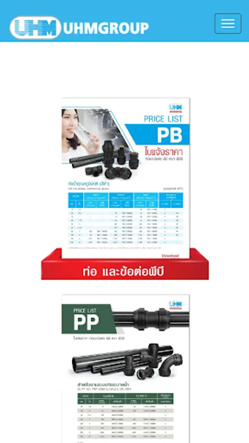 แนะนำแคตตาล๊อกผลิตภัณฑ์สินค้าท่อและอุปกรณ์ข้อต่อ ใบแจ้งราคาสินค้า โครงการอ้างอิงที่นำผลิตภัณฑ์ของบริษัท ยูเอชเอ็มไปใช้ในงาน วิธีการสาธิตการติดต่อของท่อและอุปกรณ์ข้อต่อ รวมถึงข้อมูลข่าวสารภายในองค์กร