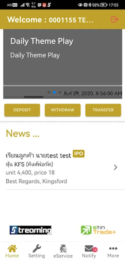 Moblie App for clients of Kingsford Securities Public Company Limited who have been granted permission to use