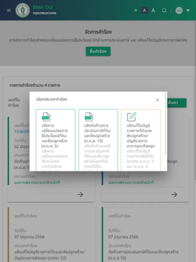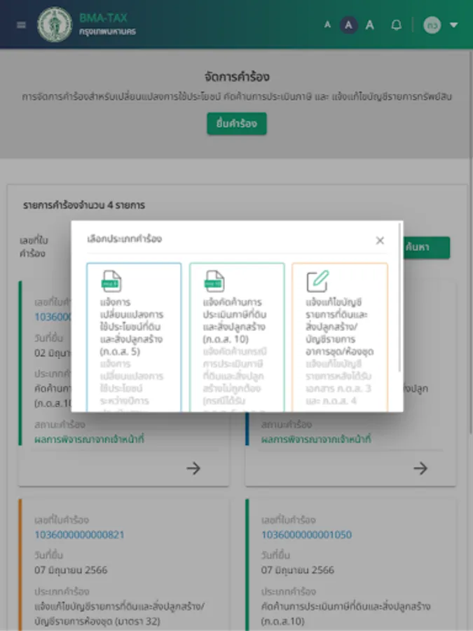 - ยื่นคัดค้านการประเมินภาษีที่ดินและสิ่งปลูกสร้าง