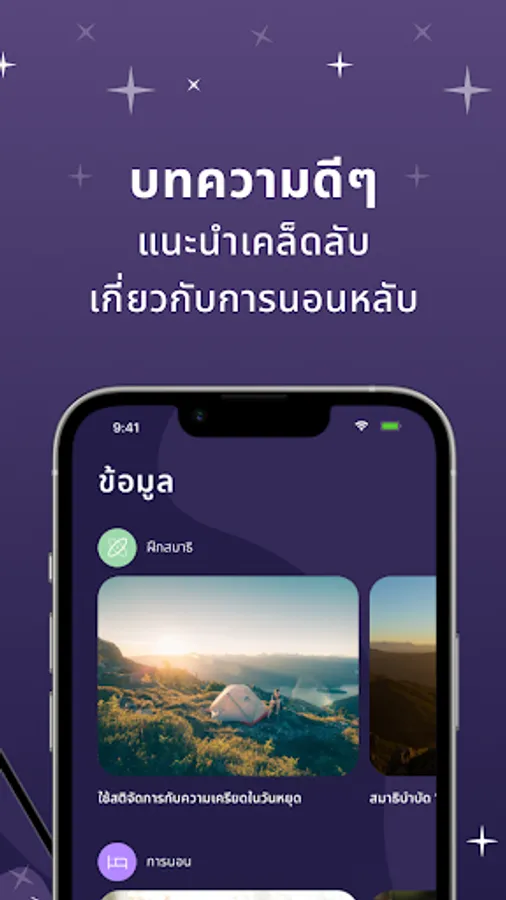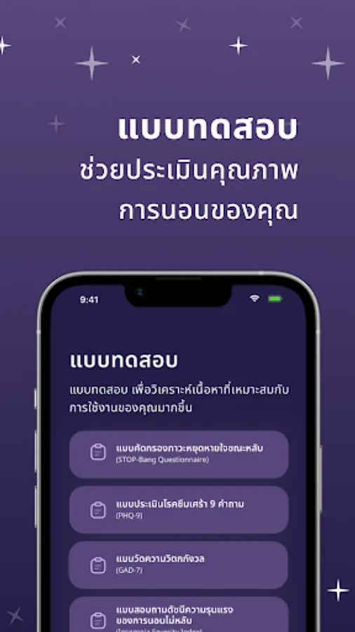 Currently in Thailand, it is found that Thai people face insomnia up to 40% of the total population or approximately 19 million people. The cause of insomnia is a problem from the external environment and may be problems within the draft or the mind of the patient The environmental problems may be caused by the brightness of the light. noise or temperature, etc., and problems from physical symptoms such as abdominal pain, headache, and body itching There are also psychological problems that cause insomnia, such as stress from work, anxiety. or even psychiatric diseases such as depression, bipolar disorder All of the above are the reasons why Thai people Insomnia from early symptoms may lead to insomnia, which if the patient does not receive treatment from the beginning. May result in the patient becoming a sleep disorder. chronic insomnia by an alternative application for treating insomnia patients or people who need a tool to promote their sleep routines. The outstanding feature of the application is a tool that helps for The treatment of insomnia through behavioral and thought modification is called "CBT-I (Cognitive Behavioral Therapy for Insomnia)".