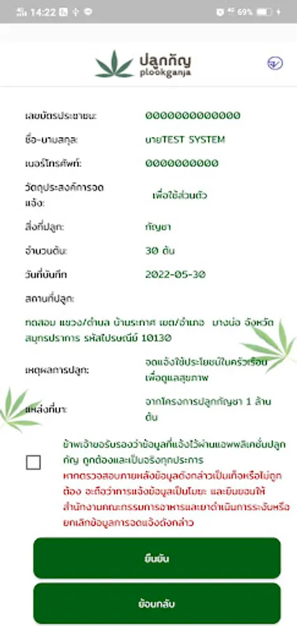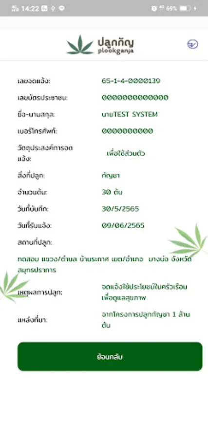 It is an application that is used to inform the cultivation of cannabis, hemp for health care. for the general public to take care of patients of Thai traditional medicine and folk medicine including permission commercially grown From 9 June 2022 onwards
