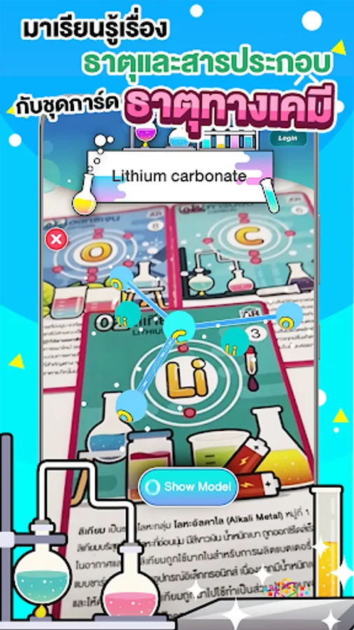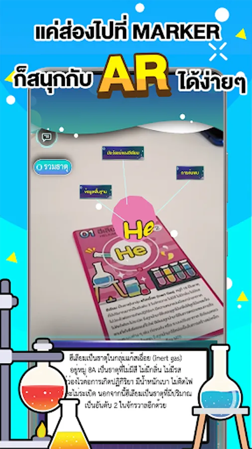 STKC has developed a new type of knowledge. In order for the target group to gain knowledge and help them understand more of the subject through AR technology or Augmented Reality, which is a technology that brings virtual 3D images into the real world through cameras and is processed by making the object 3D (virtual image) overlapping with the real image into a single image Which can look directly through the camera about chemical elements