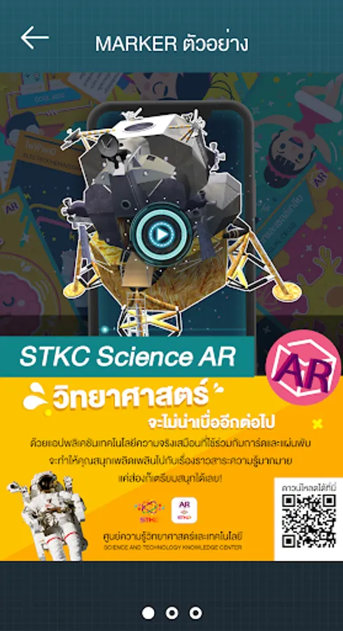 STKC has developed new knowledge To allow the target group to gain knowledge and help to understand more of the knowledge through AR or Augmented Reality technology, which is a technology that brings 3D images simulated into the real world through the camera and processed by making objects 3D (virtual image) overlapping with real images as a single image Which can be viewed directly through the camera