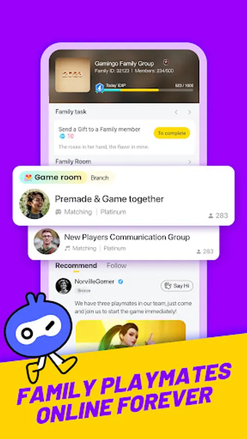 Gamingo is an application for game communication and making new friends. We support high-quality live voice chat in various popular mobile games. You can not only find interesting teammates here and better cooperate together, but also can share your game experience in the community and discuss it with others. We also provide the phone cleaner helps to clean the phone and have a better game experience. Enjoy games smoothly in Gamingo!
