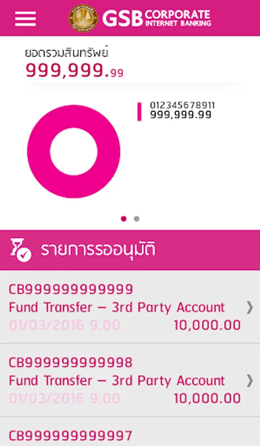 GSB Corporate Internet Banking (COIB) is an Internet Banking for Corporate The Bank provides services through a Mobile Device to facilitate customers (Corporate) to approve the financial transaction or account summary are also safe to use. with modern technology