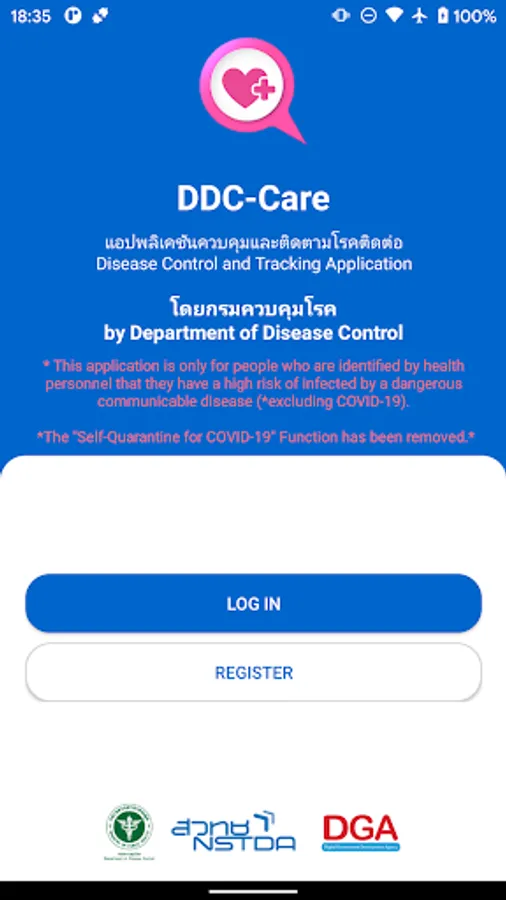 DDC-Care is an application for monitoring people who may be infected by a dangerous communicable disease. A user has to fill his/her health information in a daily self-screening form for a certain period of time specified by health personnel to assess his/her risk of dangerous communicable disease infection. The information collected by the application will be used by Thailand Department of Disease Control and authorized organizations for the purposes of screening, monitoring, treatment, and disease control of a dangerous communicable disease only. The data collected will not be released to the public in a way that can identify an identity of a user.