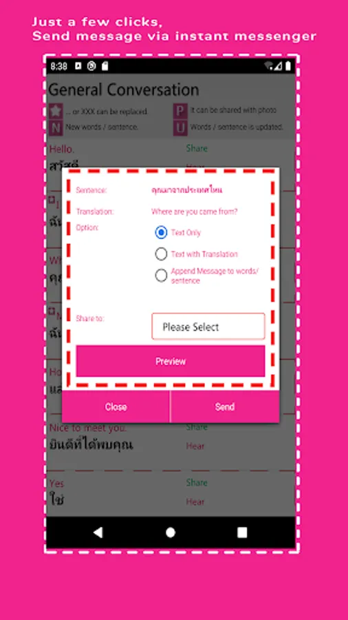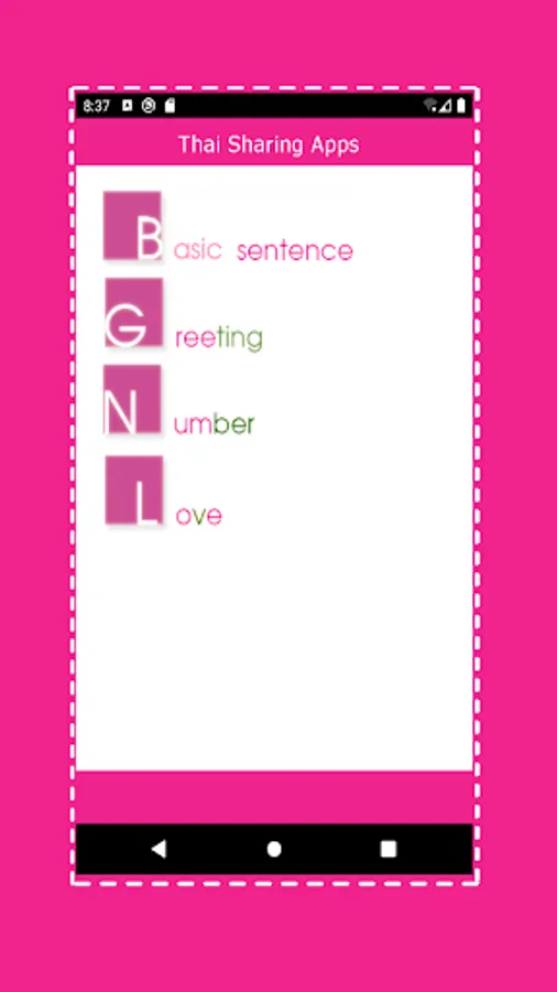 There are three categories which allow user to send messages in Thai such as basic sentences, greeting and love.