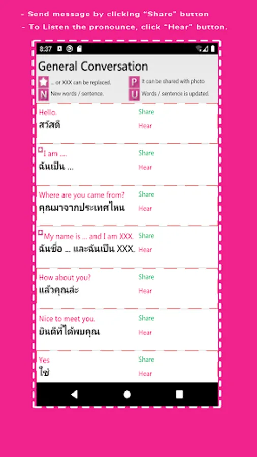 1) Some Thai basic words / sentences eg hello ...... can be shared via instant messenger.