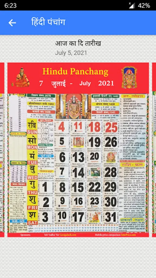 Thakur Prasad Calendar 2022 provides: