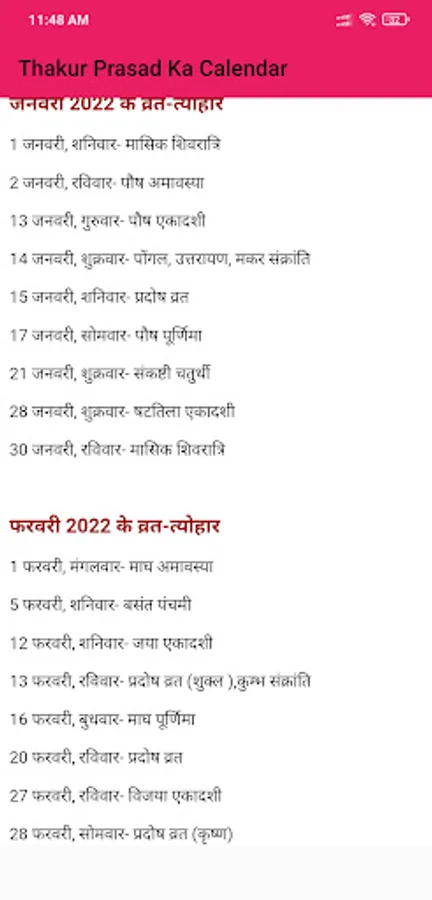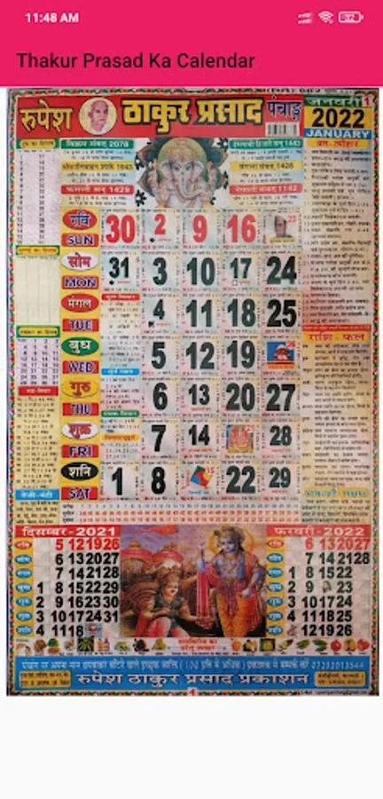 ठाकुर प्रसाद कैलेंडर 2022 - हिंदी पंचांग कैलेंडर 2022 is native Panchang, which doesn't need Internet connectivity to use, comes with following features