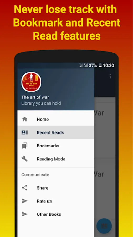 The bookmark and recent read version won’t let you lose your track while reading the original book or the The art of war explained version. You can create a bookmark really easily just tapping a button on the right corner, and the app saves the most recent point of your reading. You can come back any time and read from where you’ve left of.