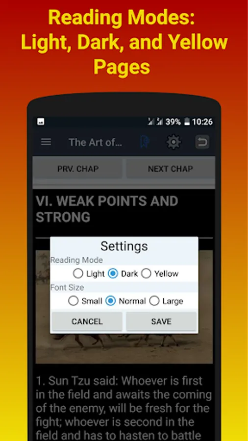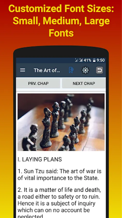 It’s true that Sun Tzu’s masterpiece it self is a great book – this app makes the reading experience even better. Take a look at some of the key features of this book reading app: