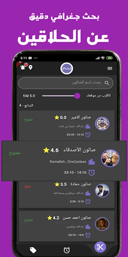 يعمل التطبيق كحلقة وصل بين الحلاقين و أصحاب الصالونات و زبائنهم ، بحيث سيتمكن كل مستخدم من إيجاد الحلاق الأقرب من موقعه الجغرافي ، و يقوم بحجز موعده عند الحلاق بكل سهولة .