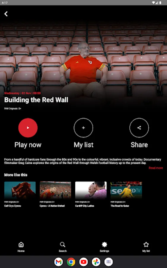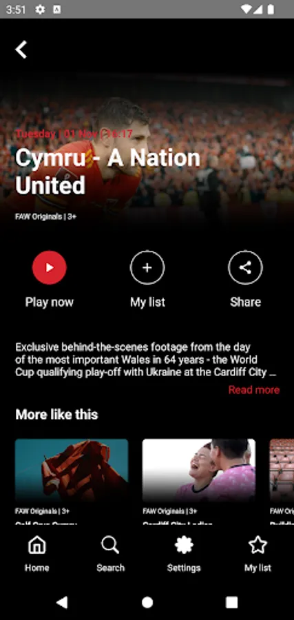 Featuring documentaries and features that showcase the best of Welsh football, from the Cymru National Teams to grassroots, including My Club features, coaching masterclasses and music videos. The Wales Away series brings you into the experience of following the Cymru national teams beyond its shores and the Red Wall on Tour episodes take you to clubs around the country where legends of the game pop in for a chat.
