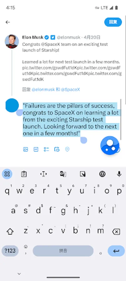 After installation and setup, simply input your idea in any app, click on the bubble, and AI will automatically generate a complete and appropriate reply for you based on the current conversation context.