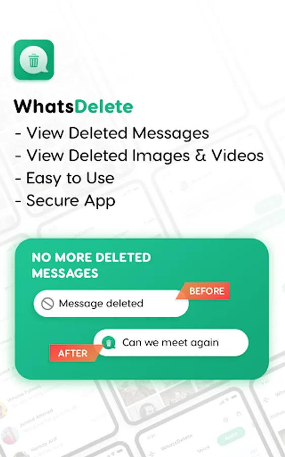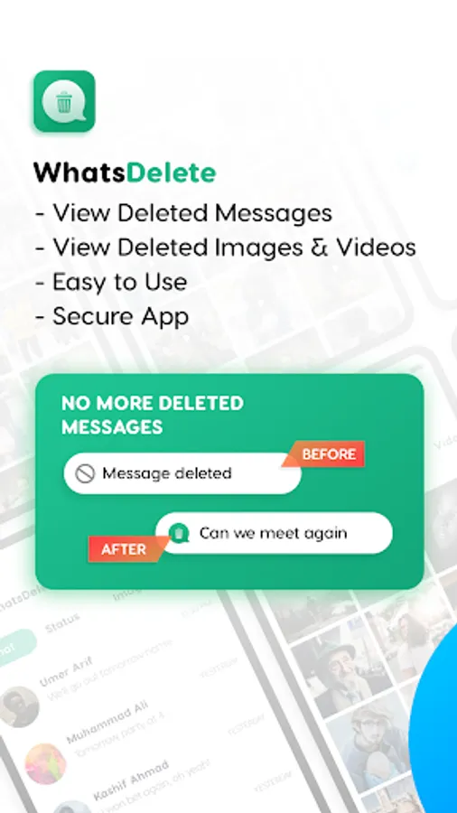 WhatsDelete helps you to WA Recover Deleted Messages & Photos by scanning your device notifications. View Deleted Messages, Hide Blue Ticks & Last Seen from your WA chat.
