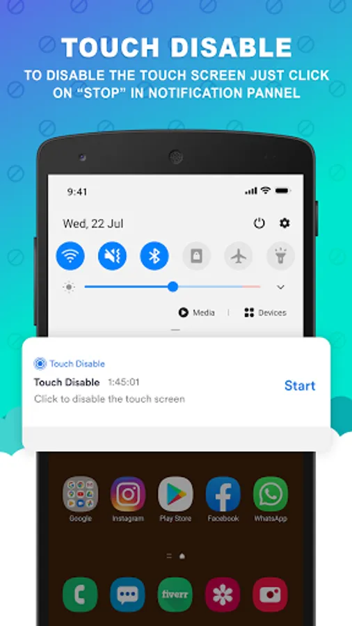 3. Now you can disable touch by clicking on the start button from the notification bar.