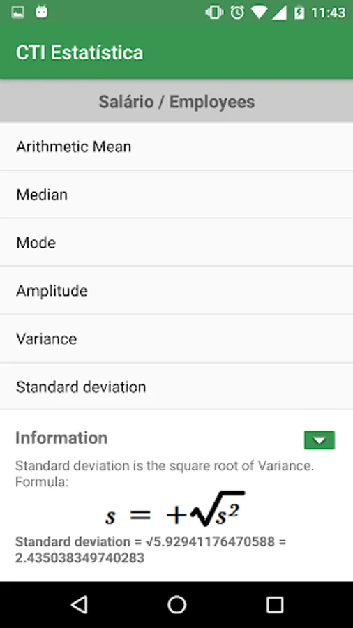 The CTI Statistics is an application whose main objective is to assist students in performing statistical calculations.