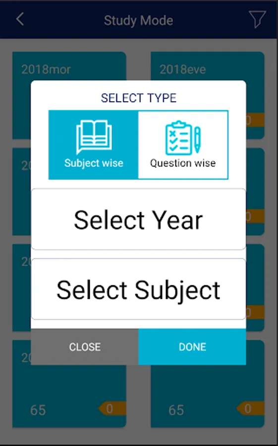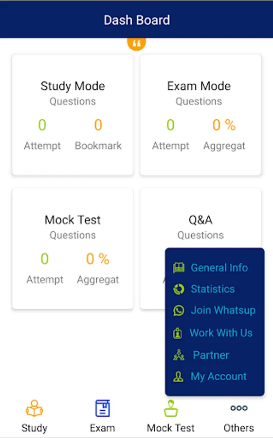 The app is divided neatly into Exam mode (Previous years & Mock tests), Study mode, Statistics, Generation information (GATE, cut off scores, past gate qualifier testimonials,