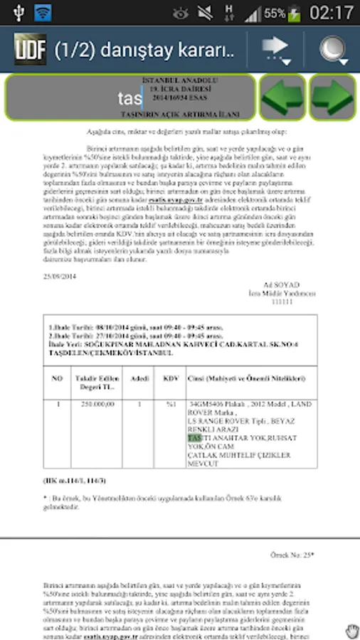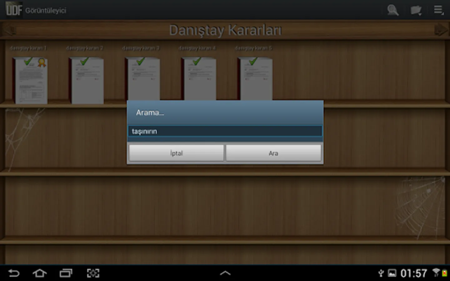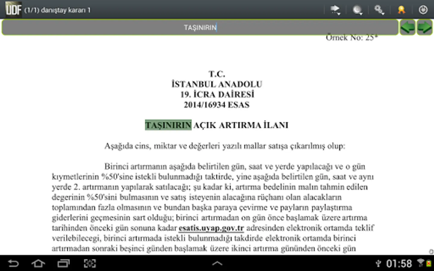 Uyap (Ulusal Yargı Ağı Projesi) döküman formatındaki (.UDF) dökümanları mobil cihazınızda internet bağlantısı gerektirmeksizin, lokal olarak herhangi stil, görüntü bozulması olmaksızın görüntüleyin!