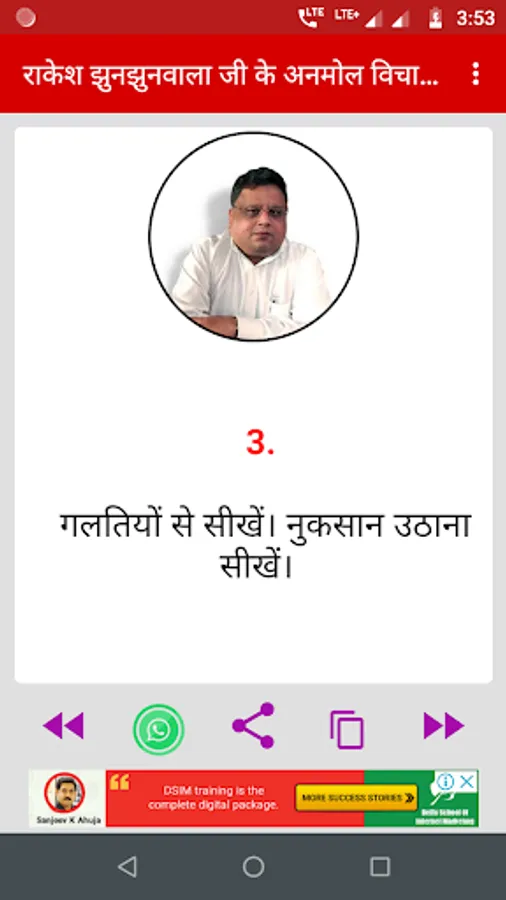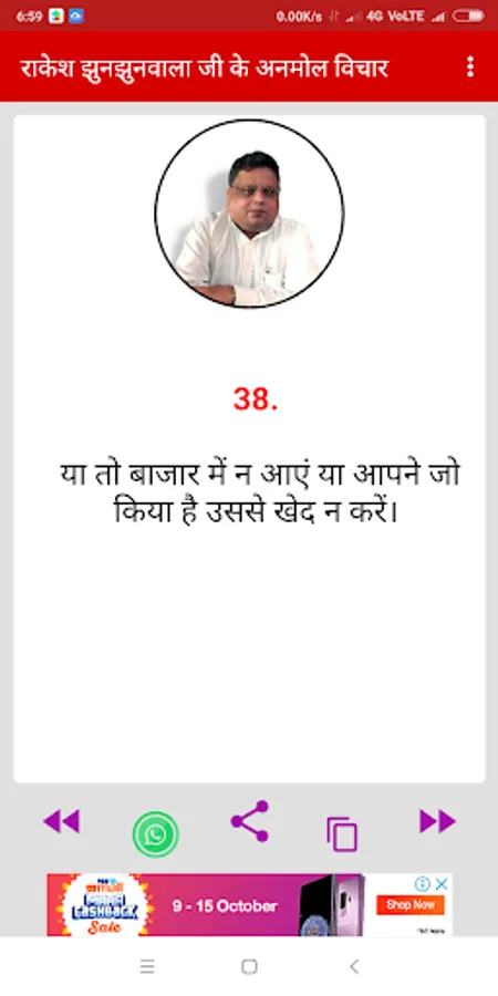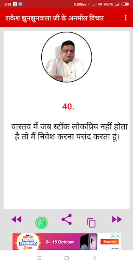 This application contains more than 50 great quotes of Rakesh Jhunjhunwala in Hindi language.