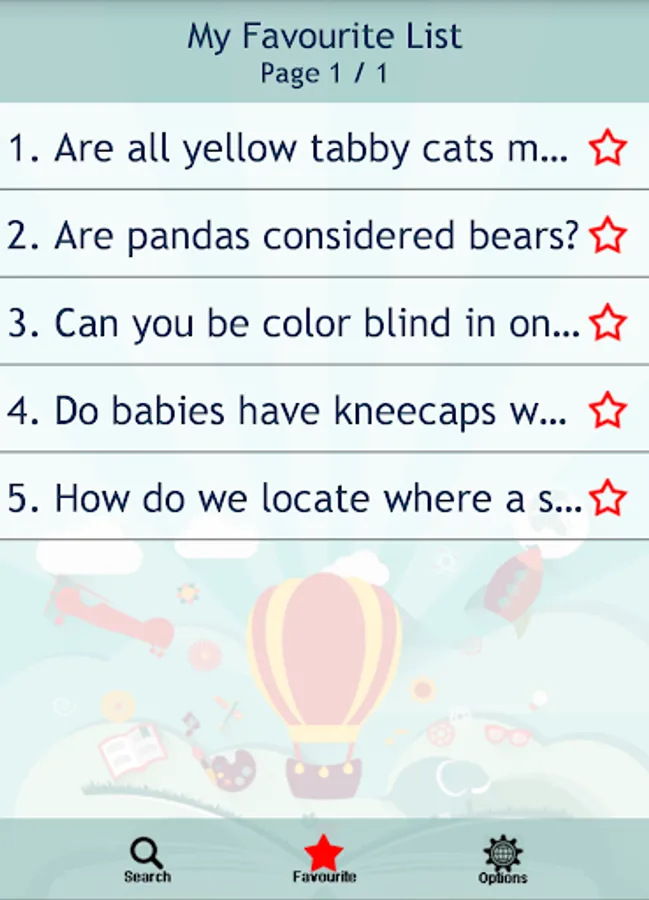 But that's not all, Just Curious app has a lot of exciting features that you'll love. You can mark your favorite questions in the app's fact list for easy access. The app also has a search function, allowing you to find questions based on keywords. Best of all, Just Curious app is completely offline, so you can use it anywhere, anytime without needing an internet connection.