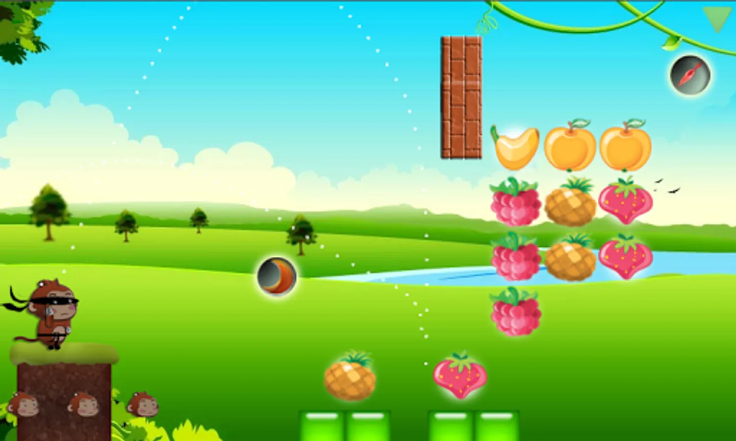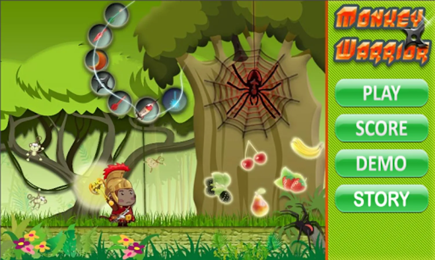 Tools and Weapons the monkeys can use include the single arrow, fire arrow, boomerang, all-around arrow, rocket arrow, and of course, the ninja star.