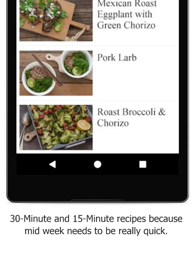 The '6-Ingredient Dinners' app is designed for when you just want new ideas for something simple for the weeknights because you're really short on time during the week.