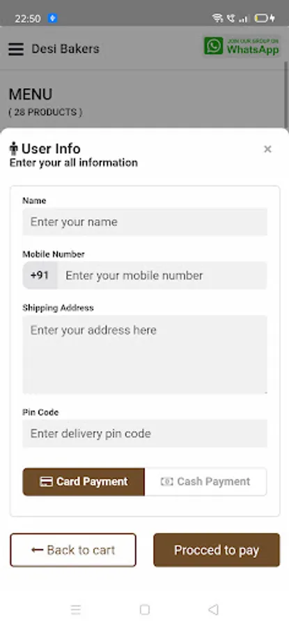 Desi Bakers is a best and fast food delivery app. It's help you to get the Desi Bakers menu into your own from and direct order to Desi Bakers store and get your food at your home quickly as you want. You can enjoy the daily offers providing by Desi Bakers store. Desi Bakers store have all kind of INDIAN food available for the customers. Then what you are waiting for ? Just download and start ordering food from Desi Bakers android application. you can make order for delivery as well for pick also. you can pay online also you can pay COD, Food Flavours open with all the option. Just Desi Bakers want to make good relation with the customers and want to serve them good food. So customers can enjoy food with their families and friends.