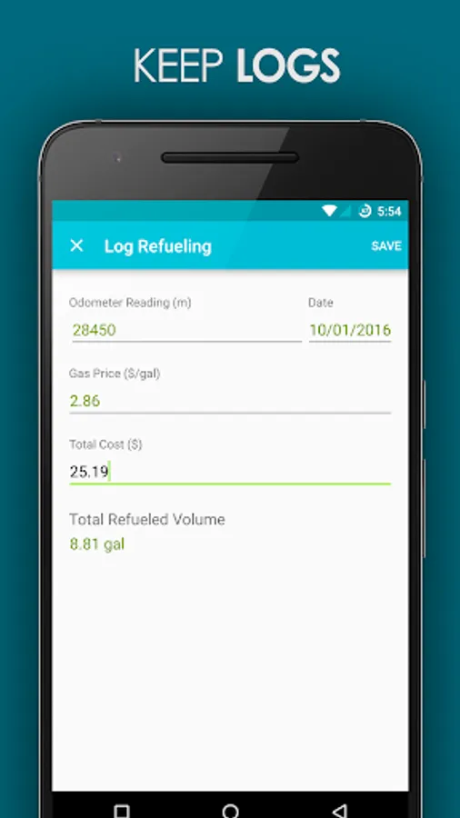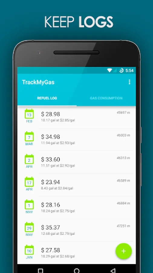 You can mix and match different units and TrackMyGas will do the math for you. Odometer in kilometers, gas in gallons, consumption in l/100 km? No problem!