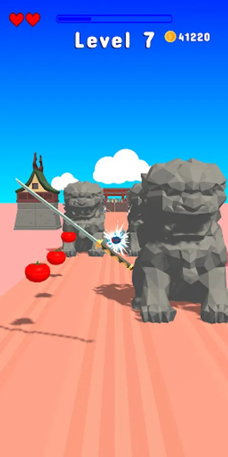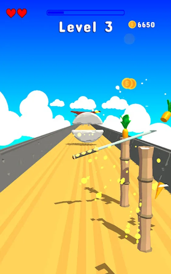 If you like cutting games, you'll like it! This game is about a katana that cuts through forests and cities. Crash, cut and slash everything in its path - fruits, vegetables, warriors, stone barriers of various shapes.