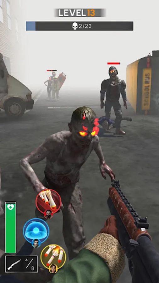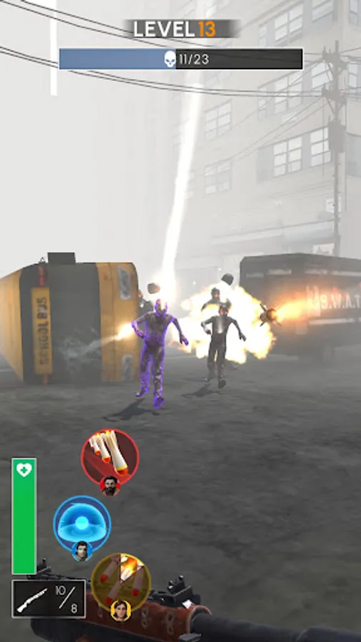 In this game you get to choose from various heroes, each with their unique skill and weapons to fight against a horde of zombies. This heroes will join your squad and help you on your way.