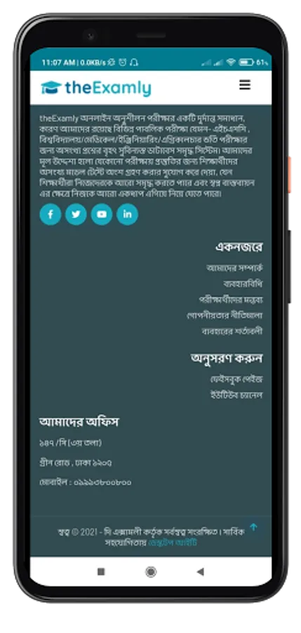 theExamly.com এমন একটা প্লাটফরম যার মাধ্যমে শিক্ষার্থীরা নিজের বাসায় বসে থেকে যেকোনো সময় অভিজ্ঞ শিক্ষকদের দ্বারা তৈরীকৃত প্রশ্ন পত্রের মাধ্যমে নিজেকে যাচাই করে নিতে পারবে। একমাত্র আমরা দিচ্ছি খুবই স্বল্প মূল্যে অসংখ্য মডেল টেস্টে অংশগ্রহণের সুযোগ। আজই আমাদের সিস্টেমে রেজিস্ট্রেশান করে বেছে নিন আপনার পছন্দের কোর্সটি।