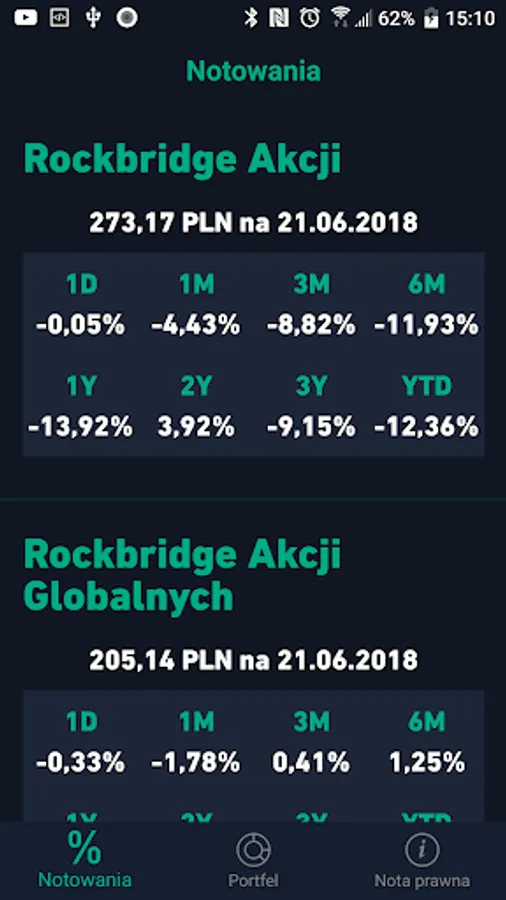 Rockbridge application enables customers quick access to valuations of the fund managed by Rockbridge. In addition to the published quotations are valid for the basic rate of return periods (1D 1M, 3M, 6M, 1Y, 2Y, 3Y, YTD).