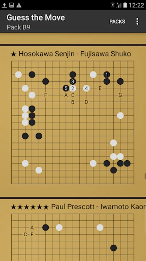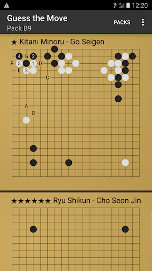Studying actual Pro's games can be a very rewarding occupation for Go players of all Ranks. This App presents positions from many different Pro games and asks you to find the next move.