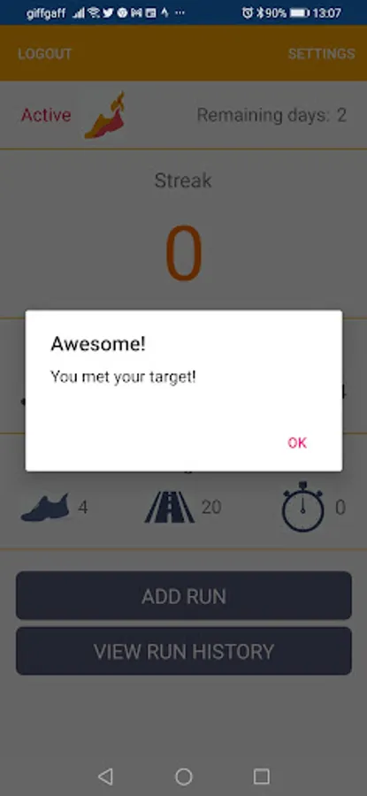 RunStreak calculates if you've met your target and sends you reminders through the week if you haven't met your goal. Once you meet your target you'll start to build up a "streak". The more weeks or months you keep hitting your target the bigger your streak will get.