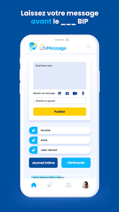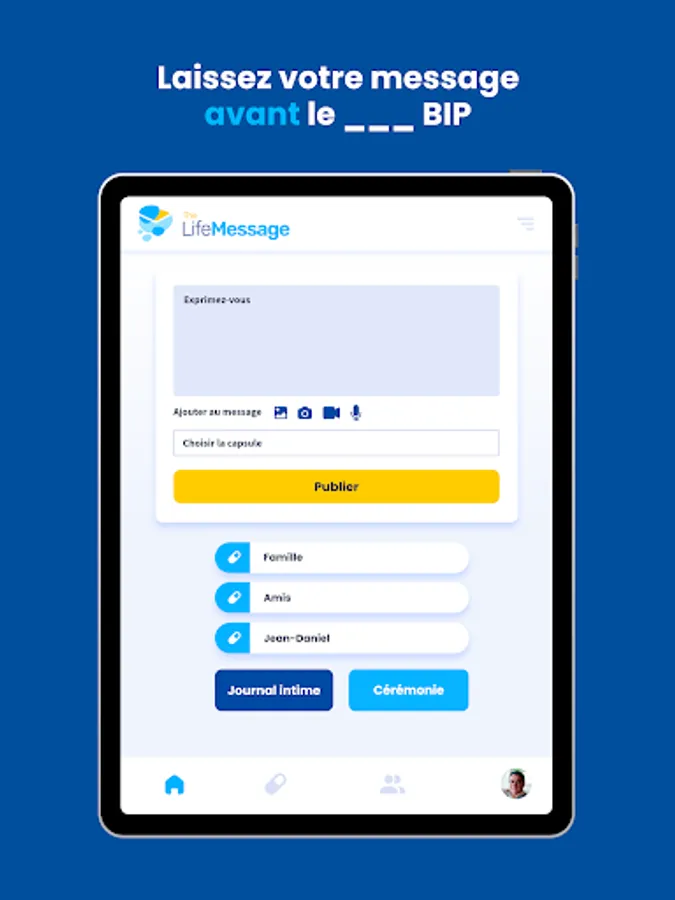Tell your story, your victories, your secrets, your ideas, leave instructions, organize your ceremony or simply celebrate life by saving time.